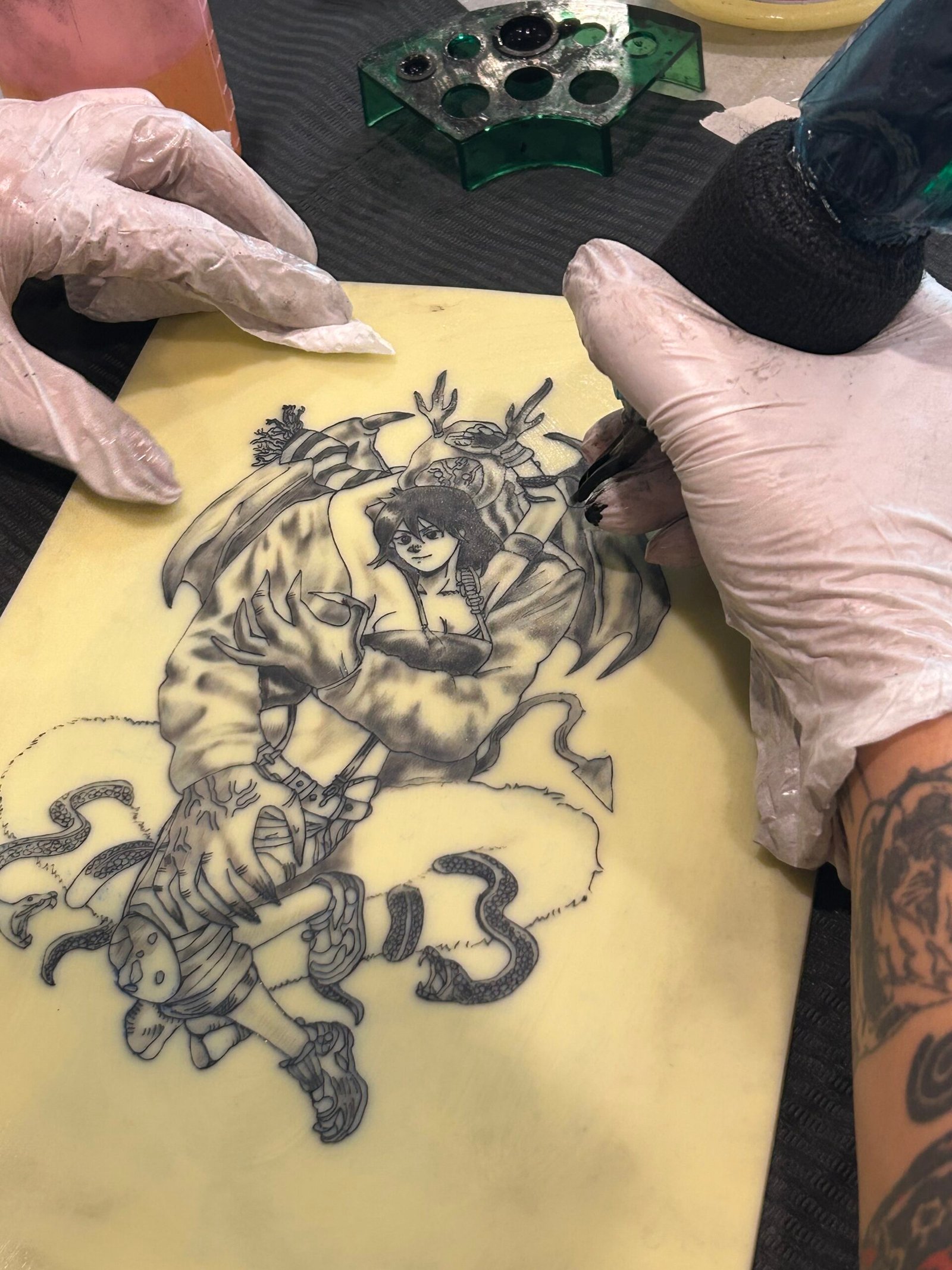 We are primarily a training studio. By acting as a canvas for our advanced students, you receive high-quality art at a fraction of the cost, while helping the next generation of artists master their craft.